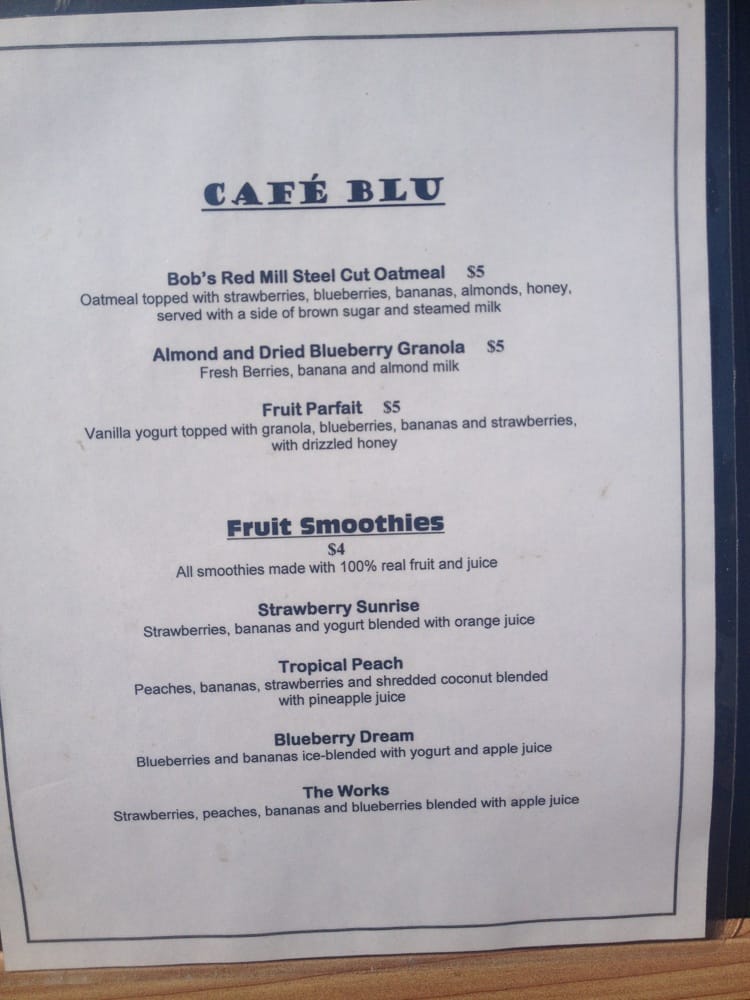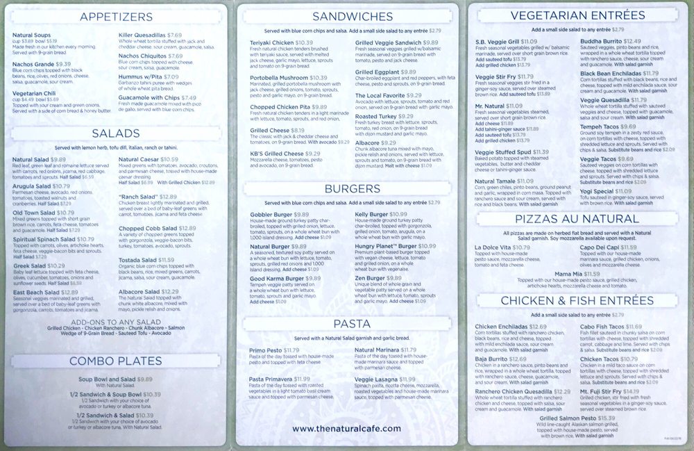 The Natural Cafe Menu